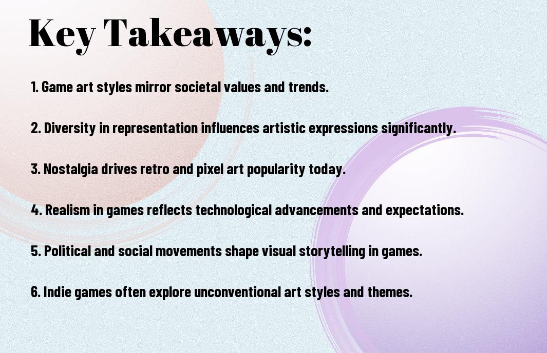 As you explore the world of gaming, you notice that game art styles have undergone significant changes over the years. You see that your favorite games often reflect the cultural and social trends of their time. Your observation is not coincidental, as game art styles are indeed influenced by the cultural shifts happening around you. You can witness this evolution in the way characters, environments, and storylines are designed, showcasing the dynamic relationship between gaming and culture.