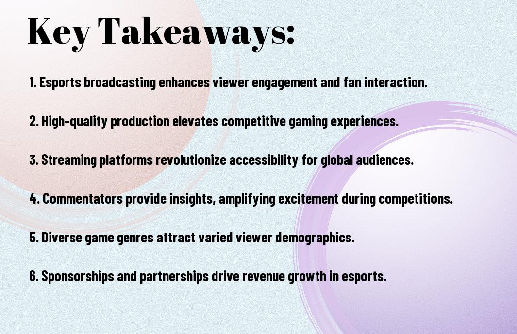 Presently, you can see how esports broadcasting has revolutionized the gaming industry, bringing competitive gaming to your living room. As you explore this world, you’ll find that building a strong community is key to its success. You can learn more about Building community through Esports and how it enhances your overall experience, making your engagement more enjoyable and interactive.