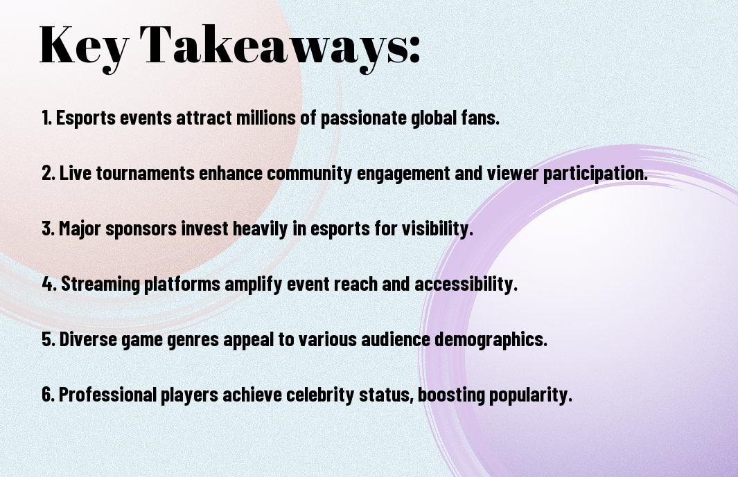 - Esports events have become a significant platform for bringing gaming to mainstream audiences, offering a unique blend of competition, entertainment, and community engagement.
