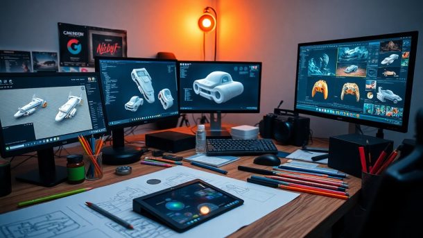 Between the stages of concept art and final rendering, you’ll need to consider the 3D modeling aspects of your game design, taking into account the level of detail and polygon count that your hardware can handle.