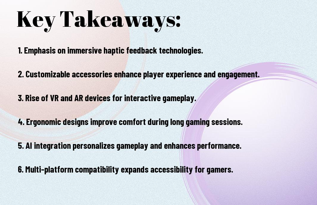Not only are gaming accessories evolving, but they are also becoming more sophisticated with the incorporation of voice and AI technology, allowing you to interact with your games in a more immersive way, and you can expect to see significant advancements in this area.