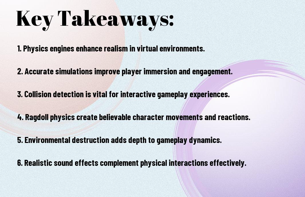 Summing up, you now understand the significance of physics engines in creating realistic gaming experiences. You can appreciate how these engines simulate real-world physics, making your gameplay more immersive and engaging. As you explore various games, you will notice the impact of physics engines on your overall gaming experience, allowing you to interact with virtual environments in a more realistic and believable way, enhancing your enjoyment of the game.